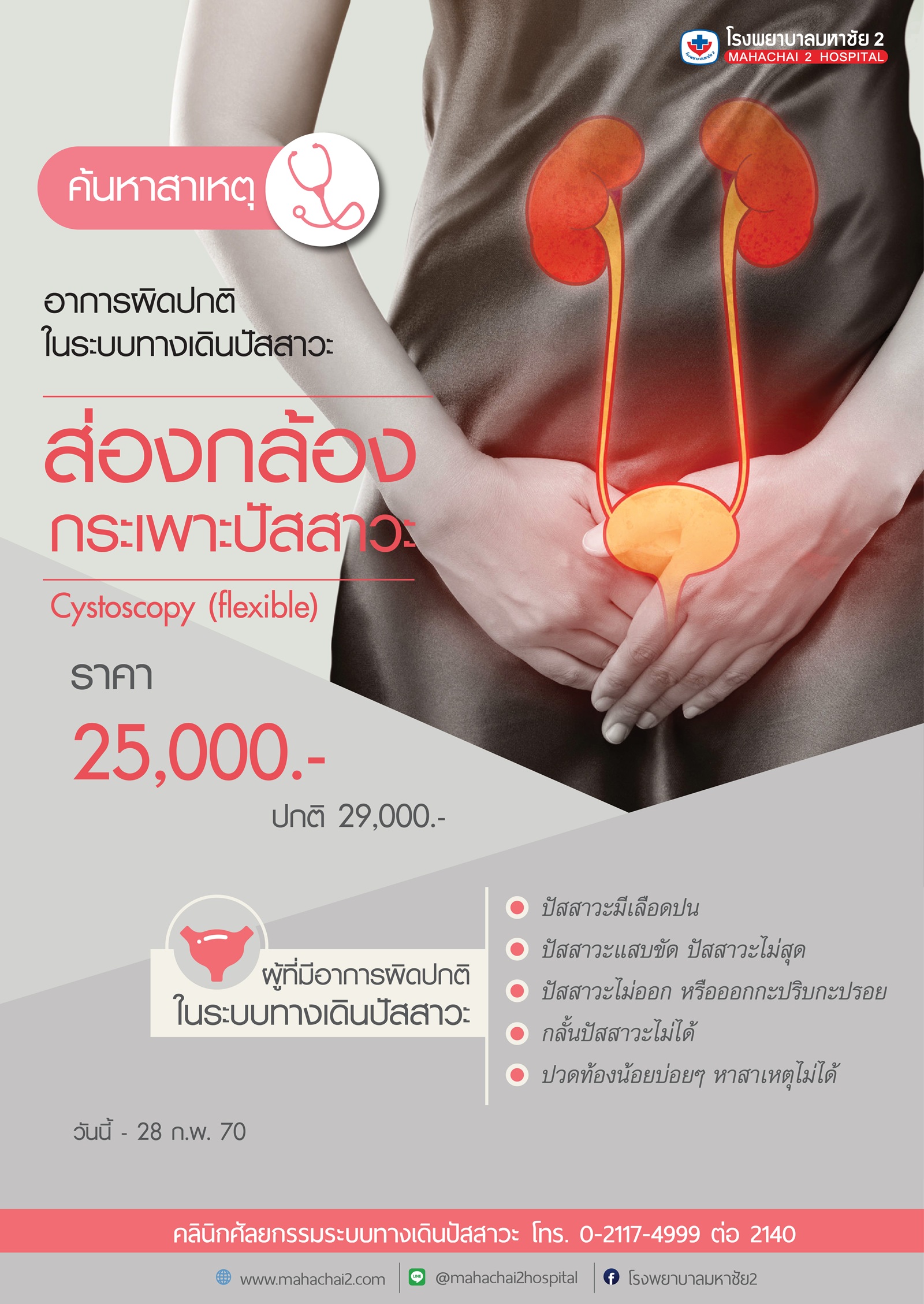 เป็นการค้นหาสาเหตุอาการผิดปกติในระบบทางเดินปัสสาวะ ผ่านกล้องชนิดพิเศษที่ช่วยให้แพทย์สามารถมองเห็นเนื้อเยื่อที่อยู่ในทางเดินปัสสาวะได้ หากพบว่าตนเองมีความผิดปกติในระบบทางเดินปัสสาวะ ควรปรึกษาแพทย์และเข้ารับการตรวจ